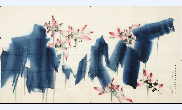 3月31日,這幅16平尺的彩墨作品現(xiàn)身湖南美術(shù)出版社旗下美侖美術(shù)館,其簡潔、大氣的用墨之中,蘊(yùn)含著“月照洞庭波”的意境,體現(xiàn)了黃永玉高超的繪畫技巧。