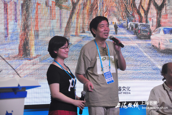 畫家黃石(右)為讀者介紹《最美的上海》編輯