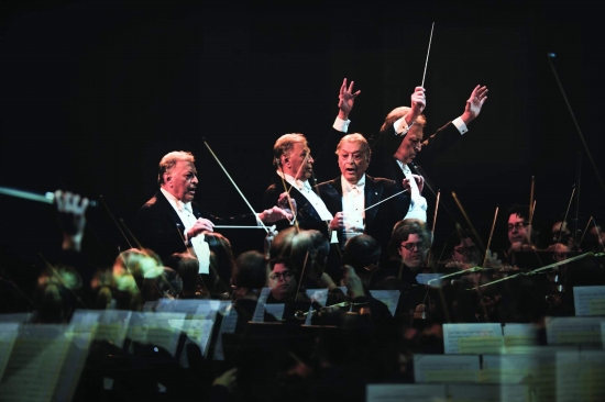 歲華紀麗·2014瀟湘晨報新年音樂會現場,祖賓·梅塔正在激情演出 (圖為多重曝光效果)。