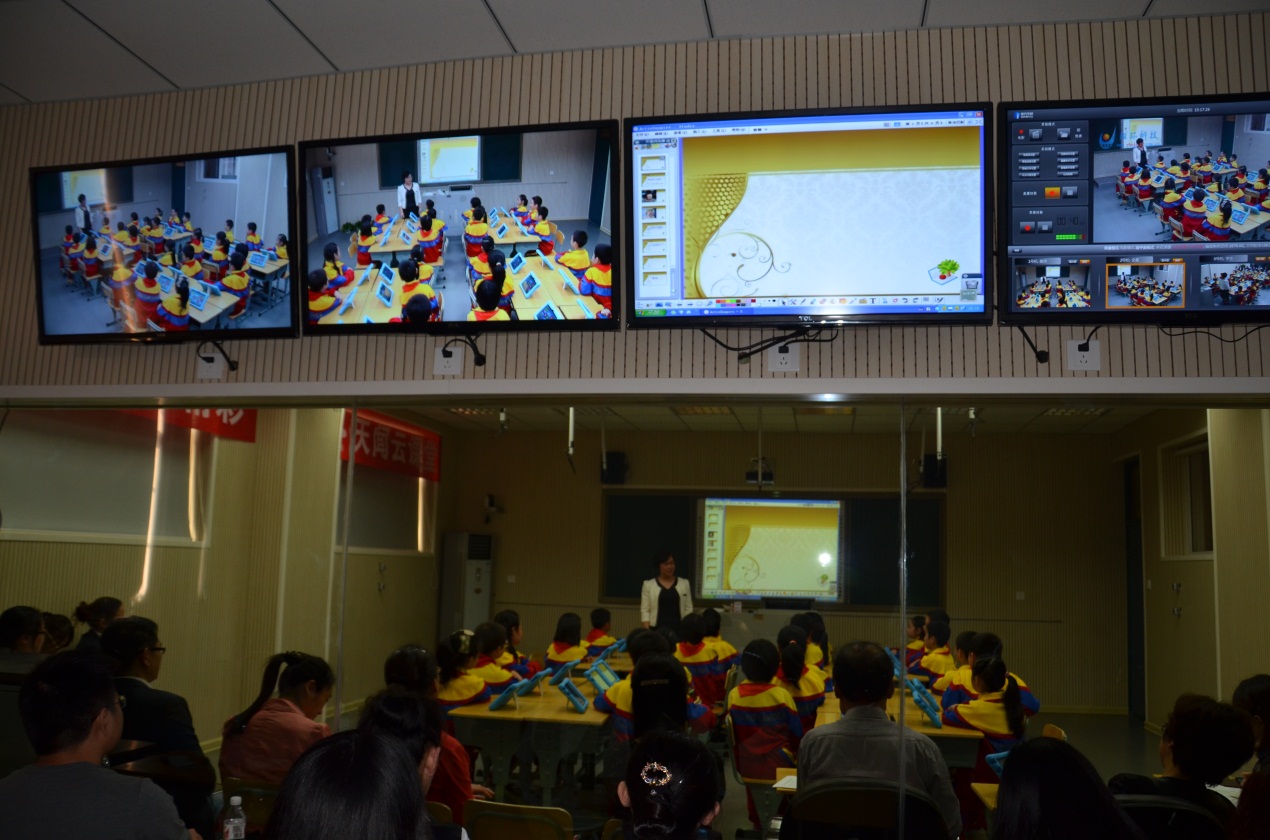 與會(huì)領(lǐng)導(dǎo)、專(zhuān)家與教師們觀摩AiSchool云課堂教學(xué)