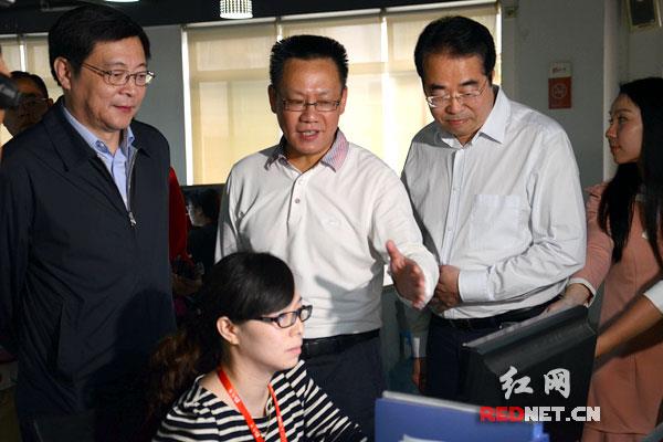 (湖南省委副書記、省長(zhǎng)杜家毫[左一],省委常委、省委宣傳部部長(zhǎng)許又聲[左三]參觀紅網(wǎng)政務(wù)中心)