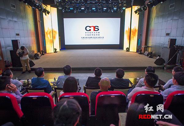 (在紅網(wǎng)的新演播大廳,杜家毫一行觀看有關(guān)中南傳媒的宣傳片。)