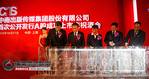 在昨天的酒會上,中宣部副部長孫志軍,國家新聞出版總署副署長鄔書林,湖南省委常委、宣傳部部長路建平,中銀國際董事長唐新宇和中南傳媒董事長龔曙光等一起用熱情的紅酒澆鑄冰雕,宣告中南傳媒正式走向資本市場。