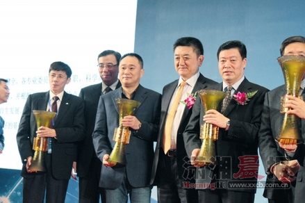 中南傳媒獲得“2012年度上市公司董事會獎”,董事長龔曙光(中)上臺領獎。