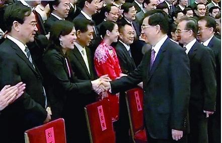 9月26日,全國(guó)文化體制改革工作表彰大會(huì)在北京人民大會(huì)堂舉行。會(huì)前,胡錦濤、溫家寶、李長(zhǎng)春、習(xí)近平、李克強(qiáng)等會(huì)見(jiàn)全體與會(huì)代表。(央視截圖)